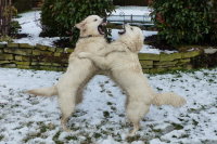 Skipper und Filou locken den Frühling. Auch erste Wasserspielchen machen schon wieder Spaß, siehe Fotos unter F-Wurf im neuen Zuhause.