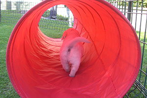 und für die Welpen eingezäunt. Daran grenzt ein großes