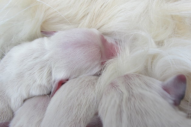 Die noch blinden Kleinen liegen stets gerne zusammen und