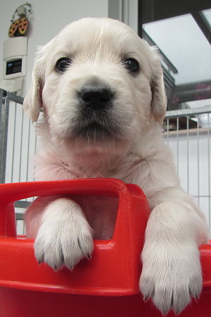 Dem aufmerksamen Blick dieses Welpen entgeht nichts.