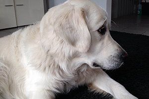 Filou soll auf der Formwertprüfung vorgestellt werden und nach seinem Äußeren bewertet werden. Dazu wird ein paar Tage zuvor das Fell in Form gebracht. Filou nimmt es sehr gelassen.