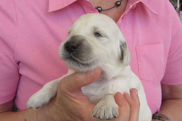 Hündin rot hält wie ihre Geschwister einigermaßen still. |