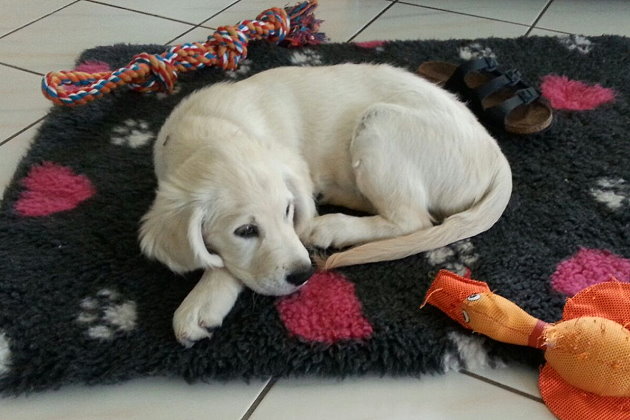 Typisch für kleine Welpen: Ob draußen oder drinnen, ..... |