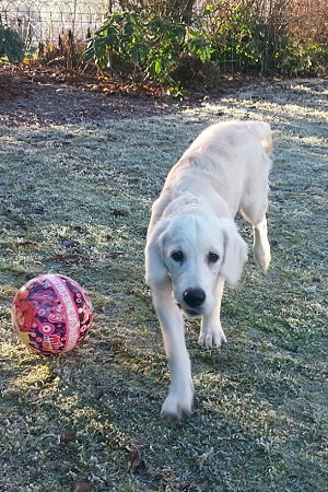 Nach dem Apportieren dürfte die Luft raus sein - aus dem Ball! |