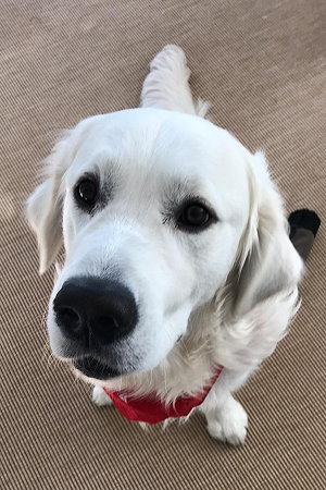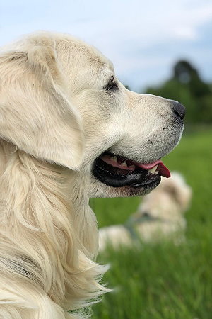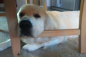 Balu hat alle Blicke drauf. Ein echtes "Retrievermodel" eben! |