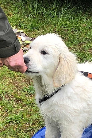 Konrad apportiert noch spielerisch, der Spaß muss im Vordergrund stehen!
