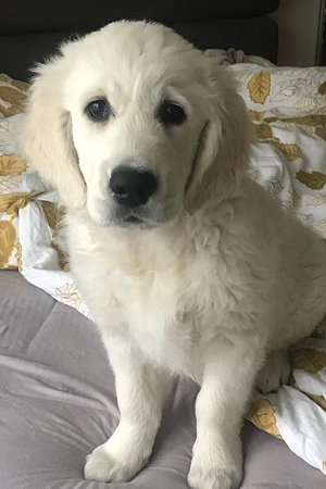 Auch mit dreizehn Wochen hat sich Lotta ihr üppiges Wusel-Welpenfell noch bewahrt.