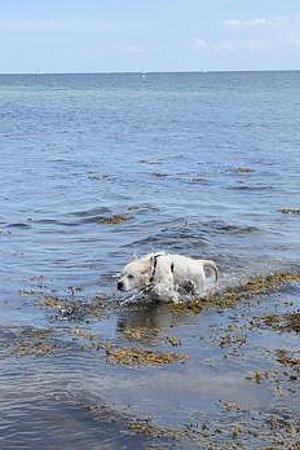 Das Apportieren aus dem Wasser ist ganz offensichtlich Hugos Ding! Wasserratte!!!