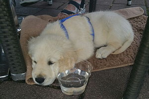Joshi versucht sich schon gekonnt im Apportieren. |