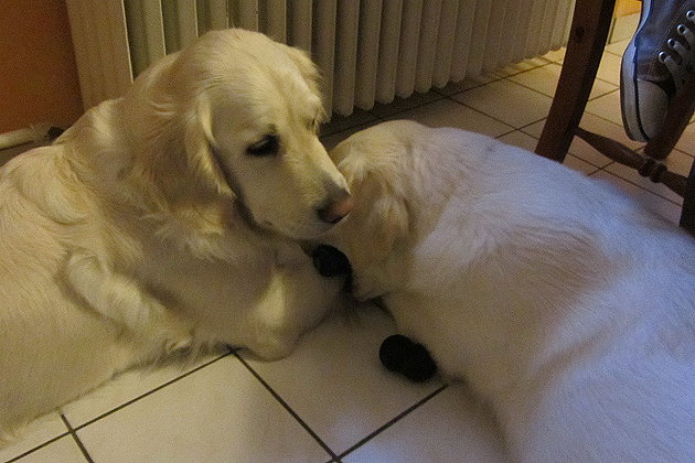 Welpen sind Paula bestens vertraut und stehen bei ihr besonders hoch im Kurs!