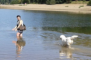 ..... und Jule trauen sich noch nicht ins tiefe Wasser und brauchen noch Boden unter den Pfoten.